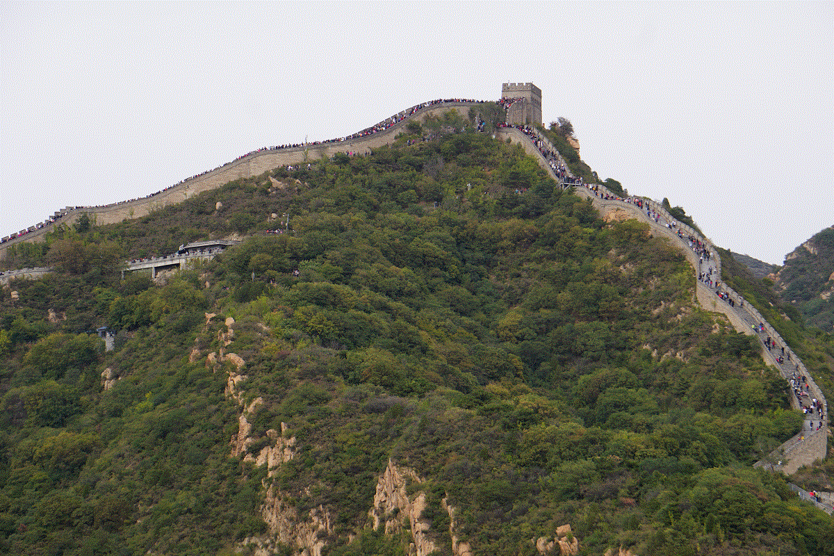 Kunsthistoriker würden beim Betrtachten dieses Abschnitts der Chinesischen Mauer die Nase rümpfen. Denn hier ist eigentlich nichts mehr alt. Dieser Teil der Mauer wurde bei der Restaurierung komplett neu aufgebaut. Die Einheimischen stört das aber nicht. Sie strömen in Scharen.